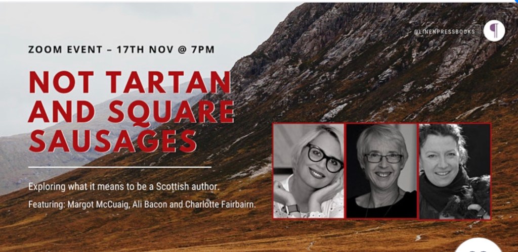 Please join myself and fellow Linen Press writers Ali Bacon and Charlotte Fairbairn at a literary event, via zoom, on the 17th November at 7pm.